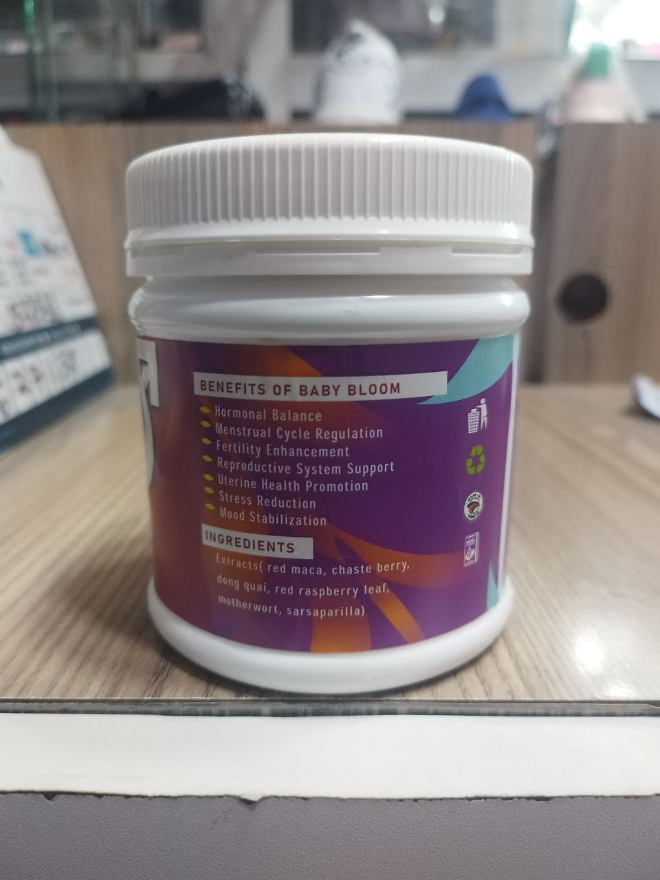 Baby Bloom is a powerful blend of adaptogenic and nutrient-rich herbs designed to support women’s reproductive health, hormonal balance, and overall well-being. This carefully crafted formula includes Red Maca, Chaste Berry, Dong Quai, Red Raspberry Leaf, Motherwort, and Sarsaparilla—each known for their traditional benefits in promoting hormonal equilibrium, menstrual cycle regulation, and fertility support.